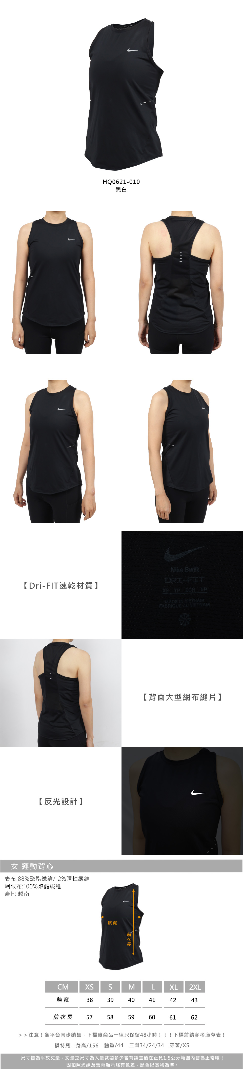 NIKE 女款運動背心  HQ0621-010 - 黑白