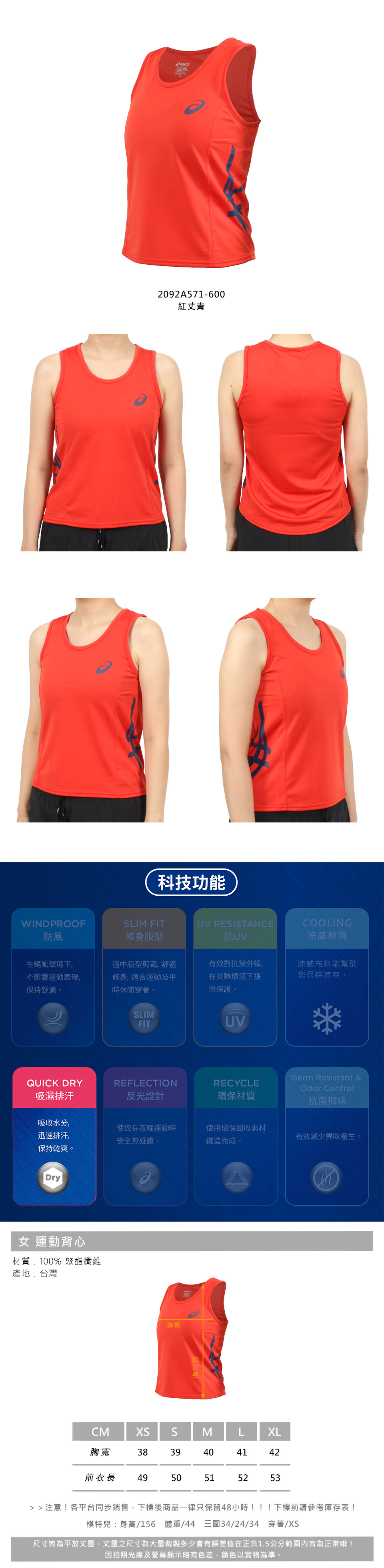 ASICS 女款運動背心 2092A571-600