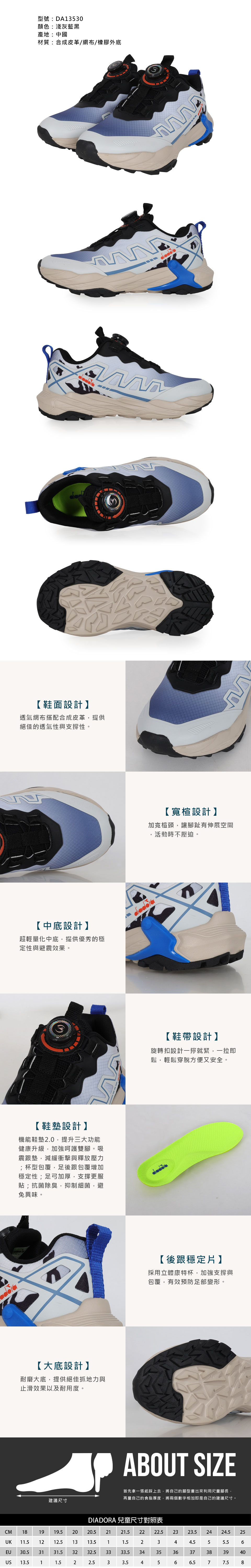 DIADORA 大童探險家轉扣越野慢跑鞋-超寬楦  DA13530 - 淺灰藍黑
