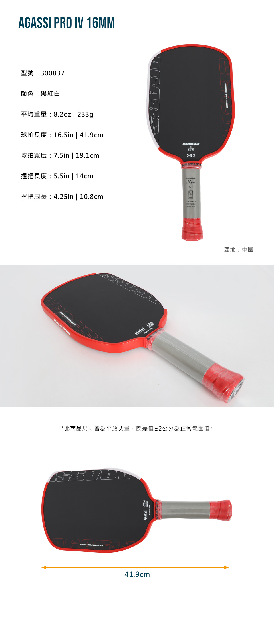 JOOLA AGASSI PRO IV 16MM匹克球拍 300837