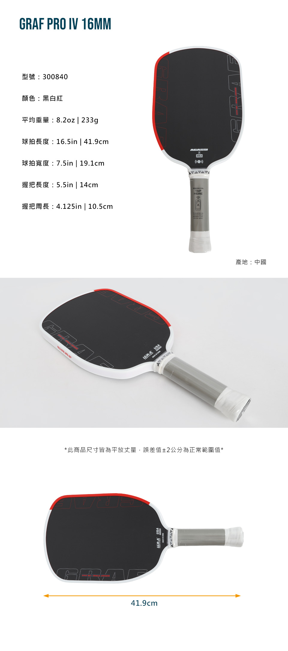 JOOLA GRAF PRO IV 16MM匹克球拍  300840 - 黑白紅