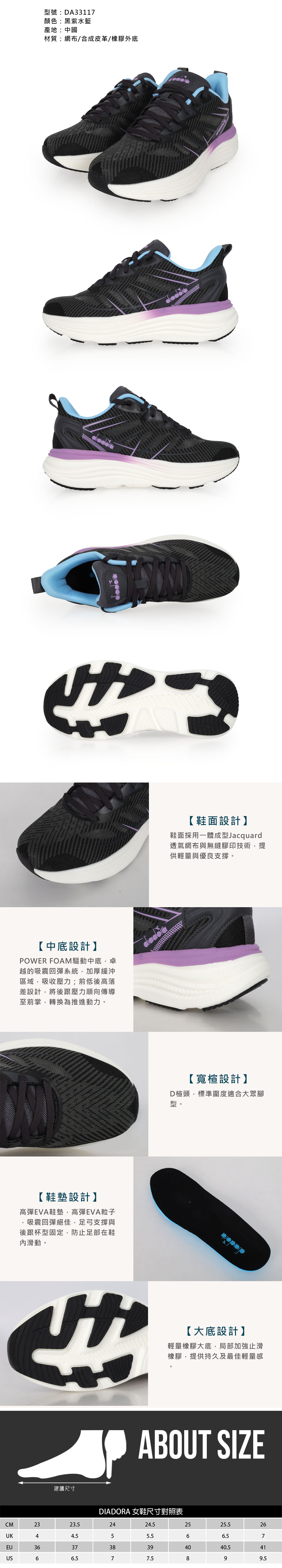 DIADORA 女款專業慢跑避震跑鞋  DA33117 - 黑紫水藍