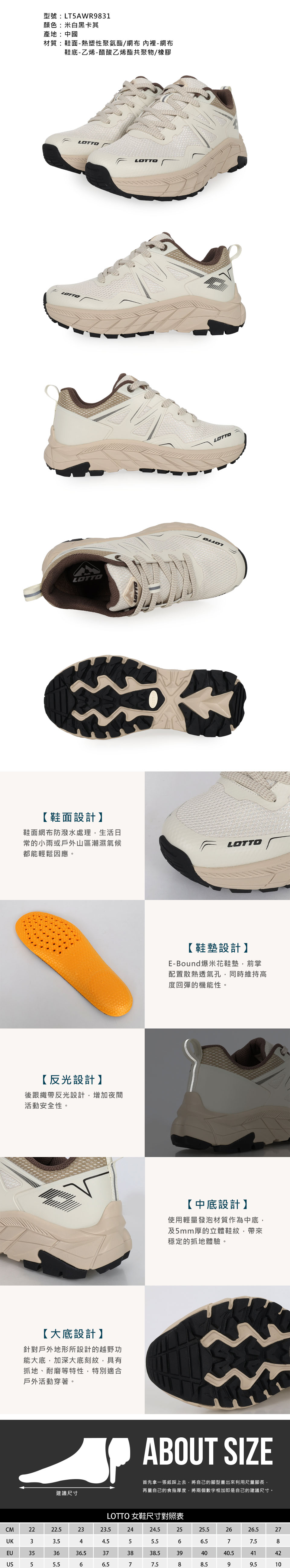 LOTTO 女款防潑水戶外健行鞋  LT5AWR9831 - 米白黑卡其