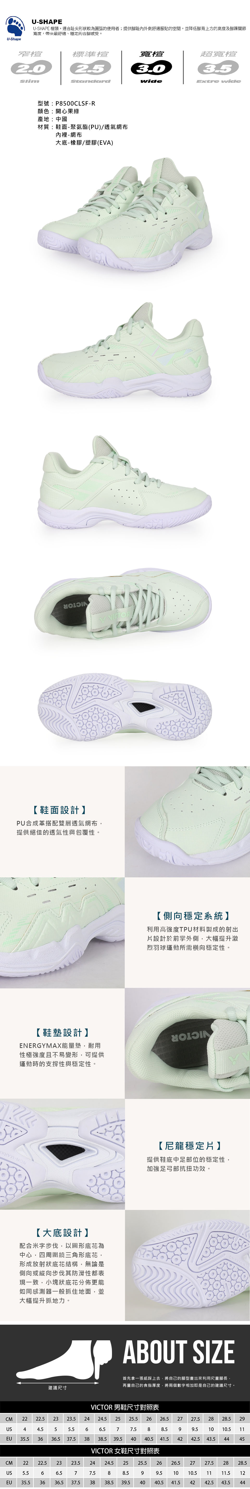VICTOR 女款羽球鞋  P8500CLSF-R - 開心果綠