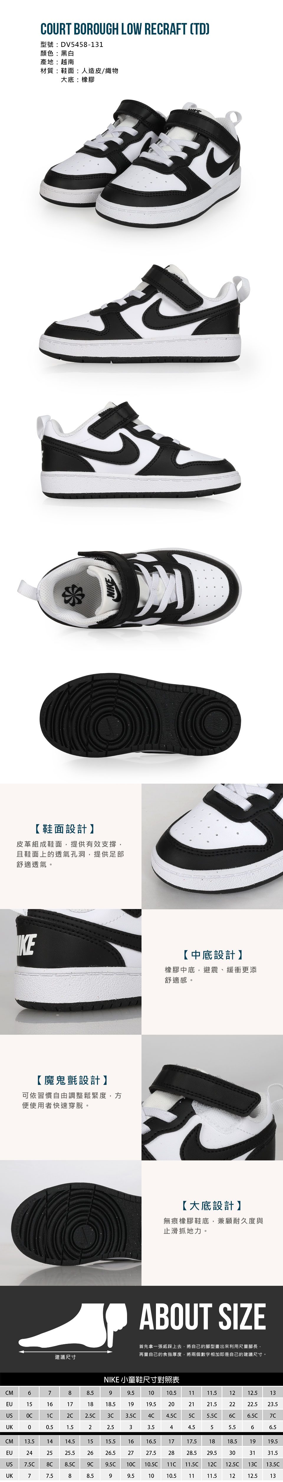 NIKE 小童運動休閒鞋  @COURT BOROUGH LOW RECRAFT (TD)@ DV5458-131 - 黑白