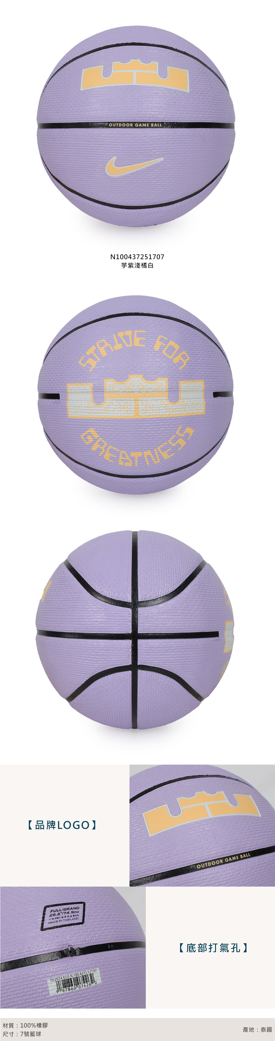 NIKE LEBRON PLAYGROUND 8P 2.0 7號籃球  N100437251707 - 芋紫淺橘白