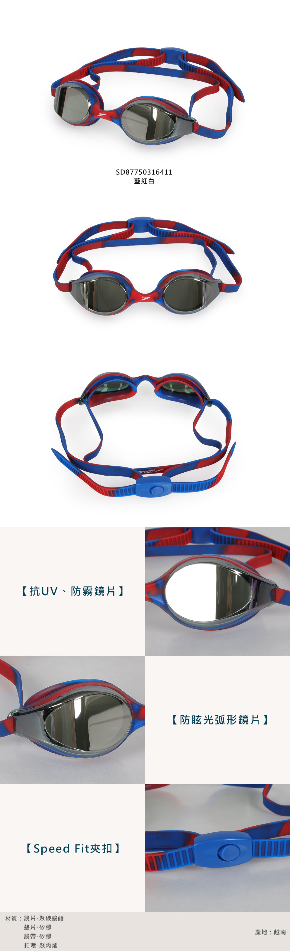 SPEEDO 兒童運動泳鏡 鏡面 Hyper Flyer  SD87750316411 - 藍紅白