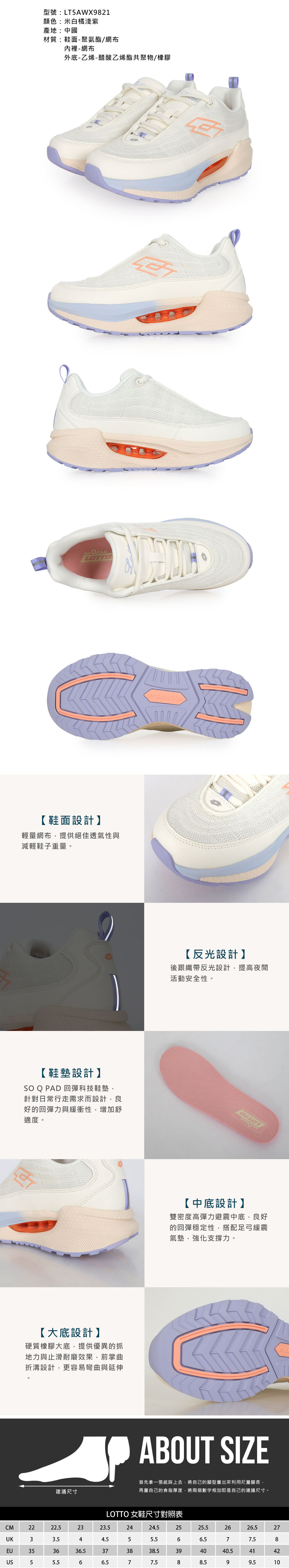 LOTTO 女款美體健走鞋  LT5AWX9821 - 米白橘淺紫