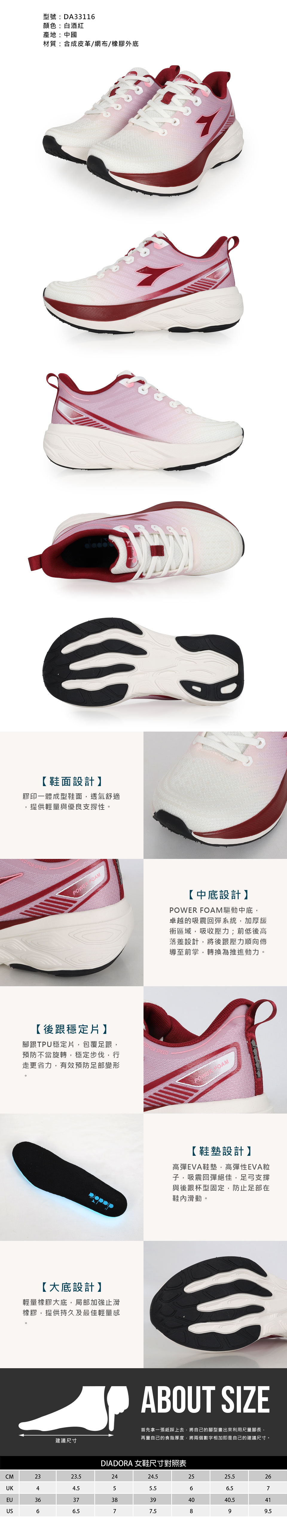 DIADORA 女款勁速避震慢跑鞋  DA33116 - 白酒紅