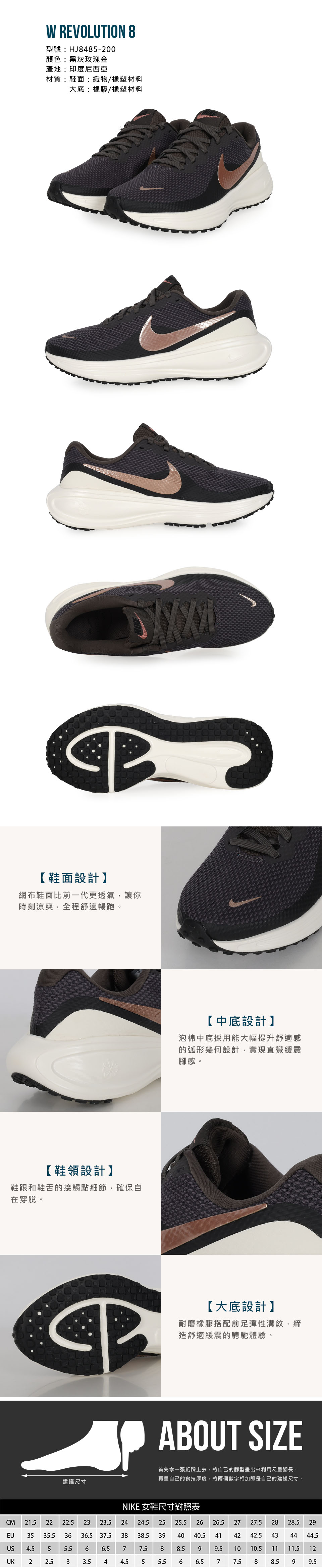NIKE 女款緩震慢跑鞋  @W REVOLUTION 8@ HJ8485-200 - 黑灰玫瑰金