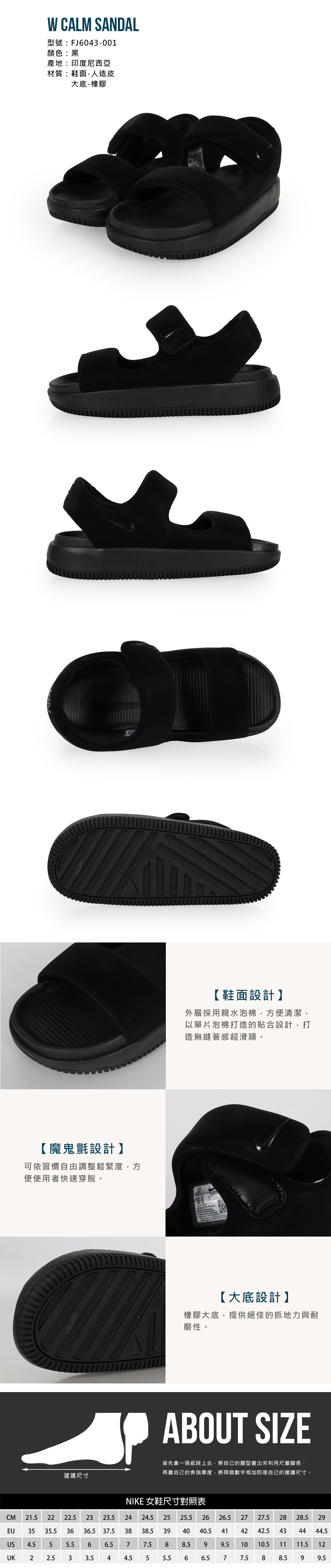 NIKE 女款厚底涼鞋  @W CALM SANDAL@ FJ6043-001 - 黑