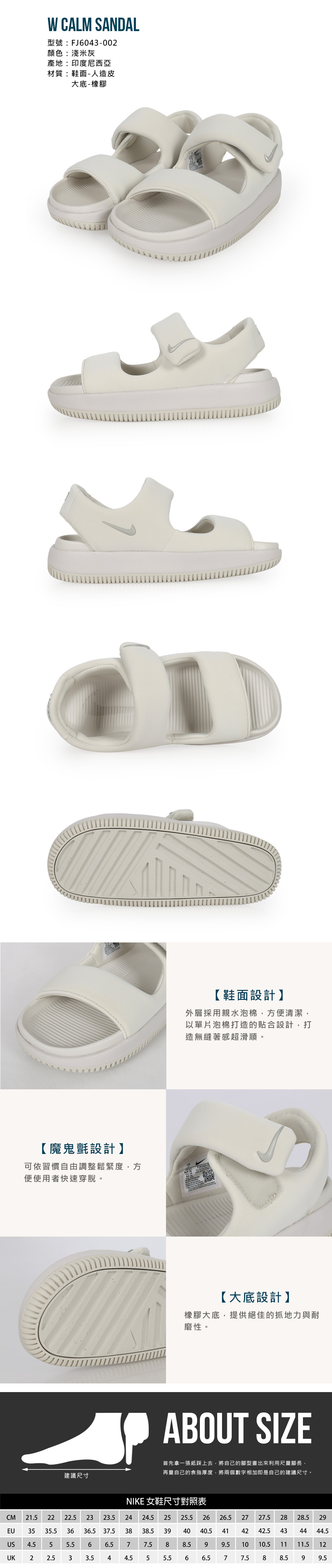 NIKE 女款厚底涼鞋  @W CALM SANDAL@ FJ6043-002 - 淺米灰