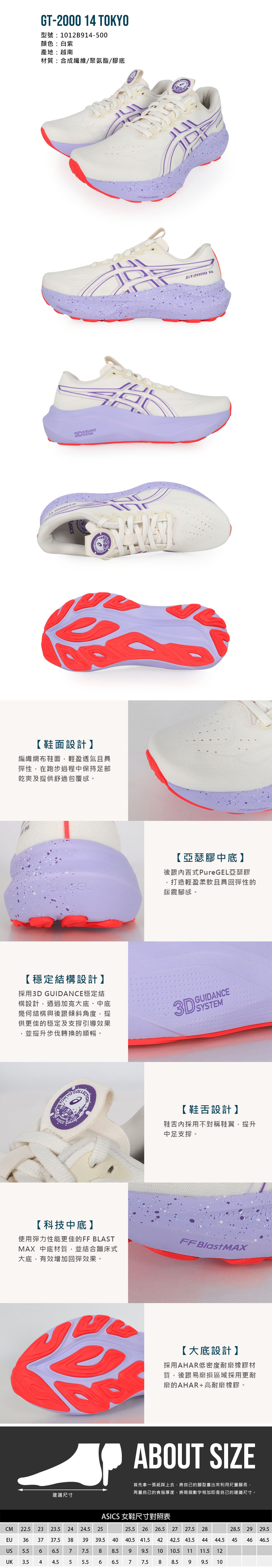 ASICS 特定-女款東京系列支撐慢跑鞋  @GT-2000 14 TOKYO @ 1012B914-500 - 白紫