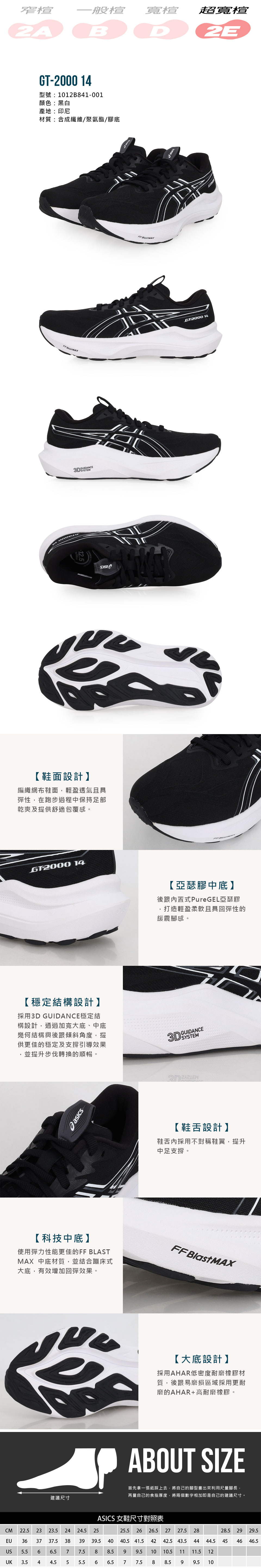 ASICS 女款慢跑鞋-2E  @GT-2000 14@ 1012B841-001 - 黑白