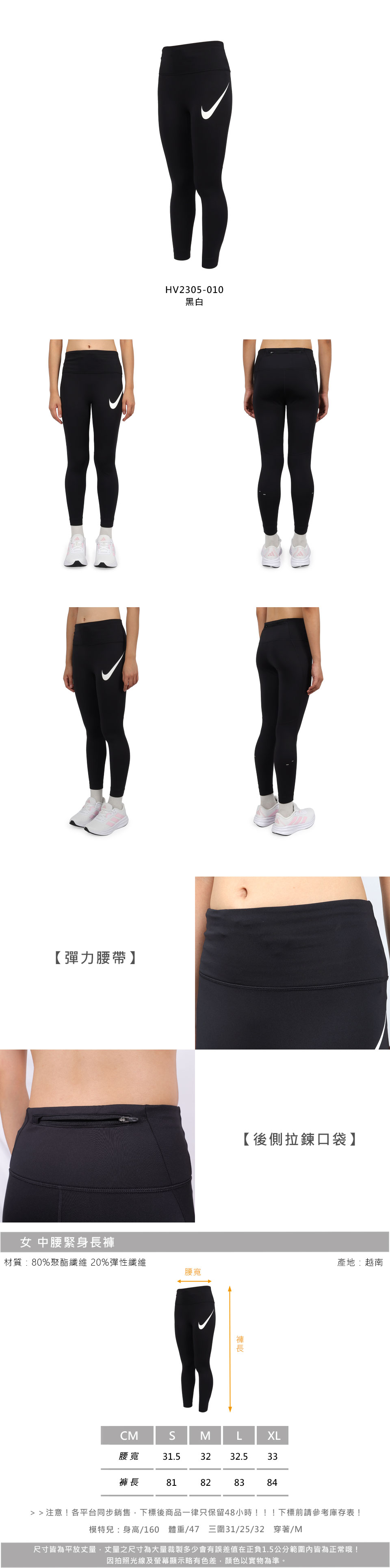 NIKE 女款中腰緊身長褲  HV2305-010 - 黑白