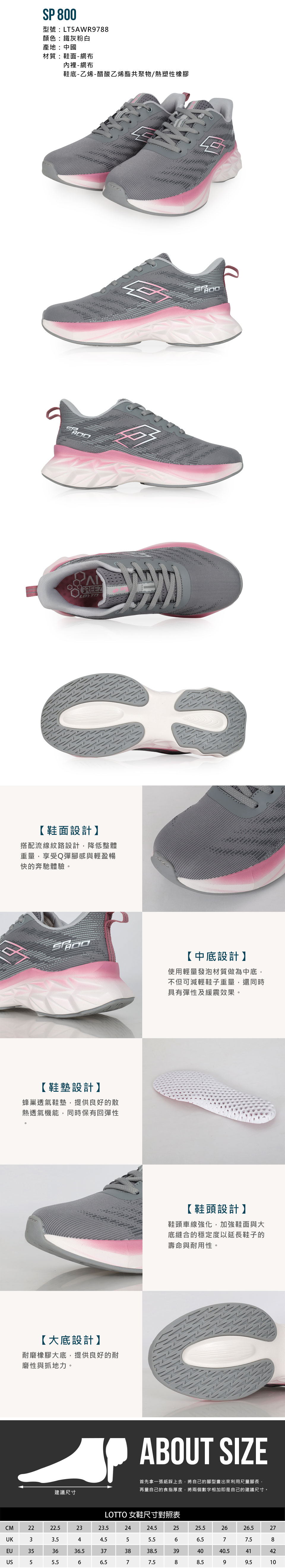LOTTO 女款SP800輕量極避震跑鞋  LT5AWR9788 - 鐵灰粉白