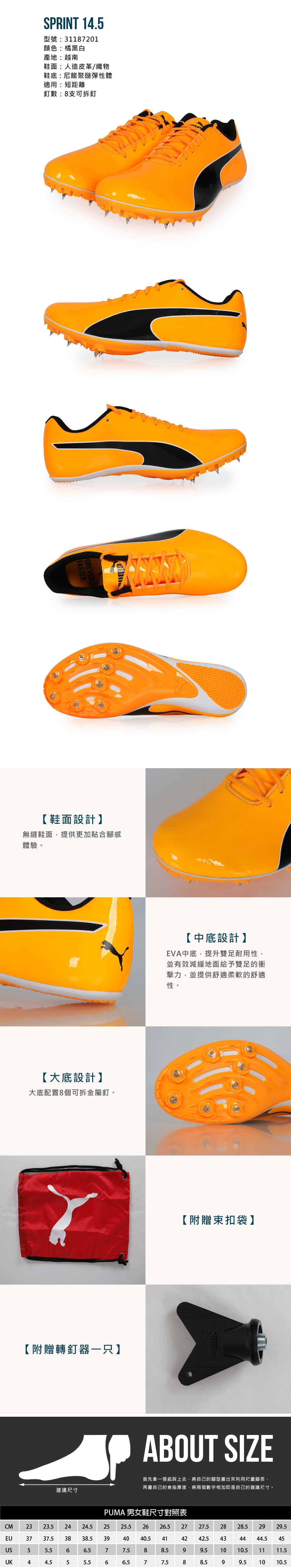 PUMA 特定-田徑釘鞋(短距離)  @Sprint 14.5@ 31187201 - 橘黑白