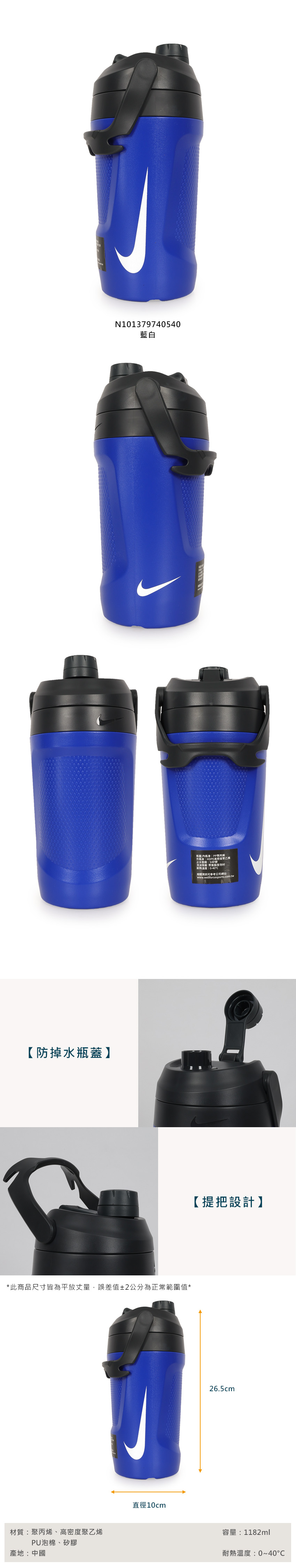 NIKE FUELJUG大口徑霸水壺40OZ  N101379740540 - 藍白