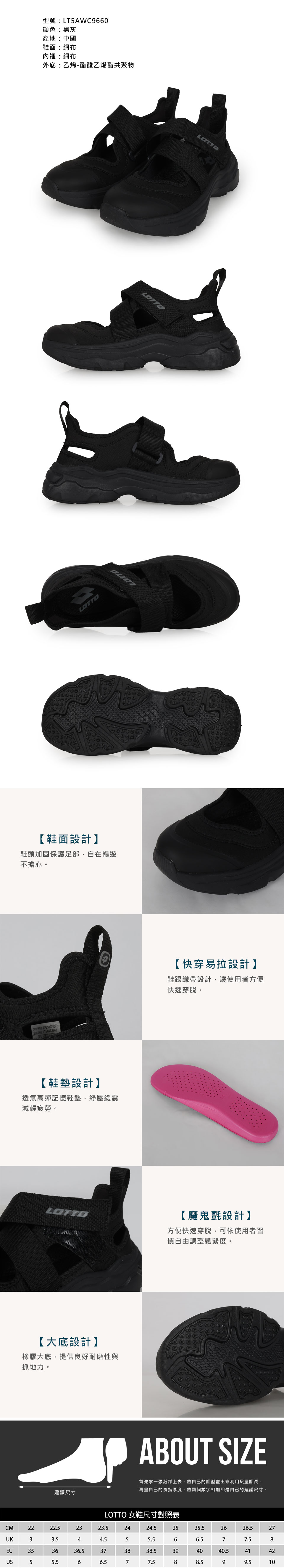 LOTTO 女款樂活瑪莉珍休閒護趾涼鞋  LT5AWC9660 - 黑灰