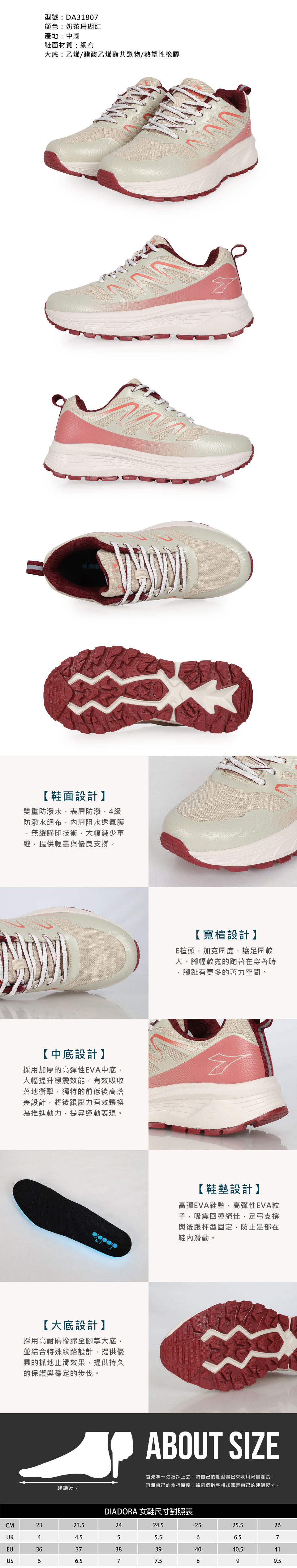 DIADORA 女款泰坦防潑水越野慢跑鞋  DA31807 - 奶茶珊瑚紅