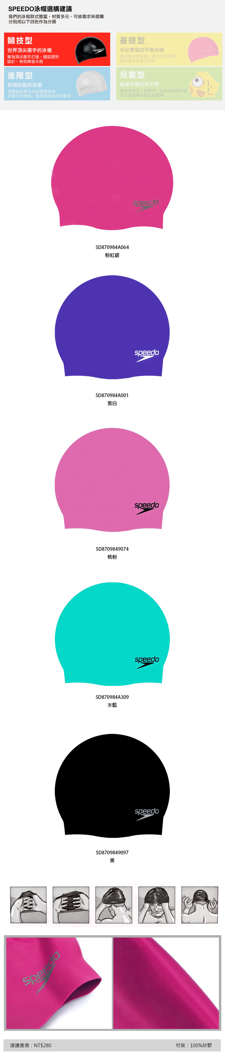 SPEEDO 成人矽膠泳帽 Plain Moulded SD8709849097