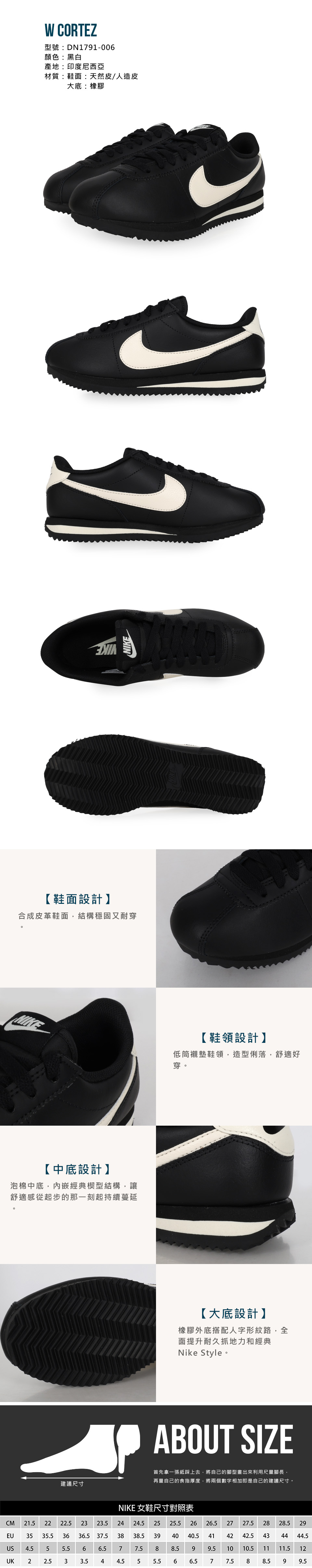 NIKE 女款運動休閒鞋  @W CORTEZ@ DN1791-006 - 黑白