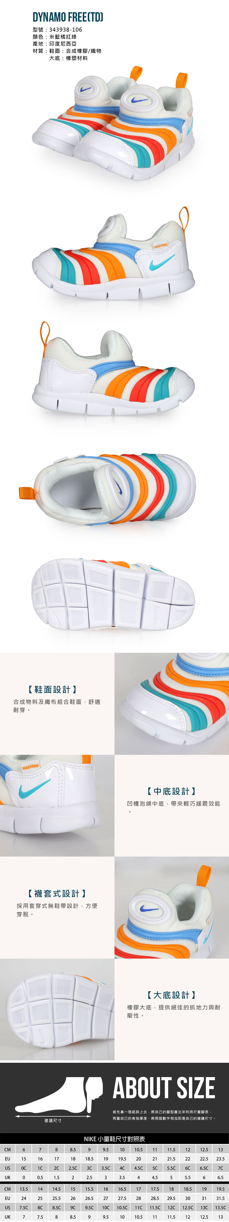 NIKE 小童毛毛蟲運動鞋  @DYNAMO FREE(TD)@ 343938-106 - 米藍橘紅綠