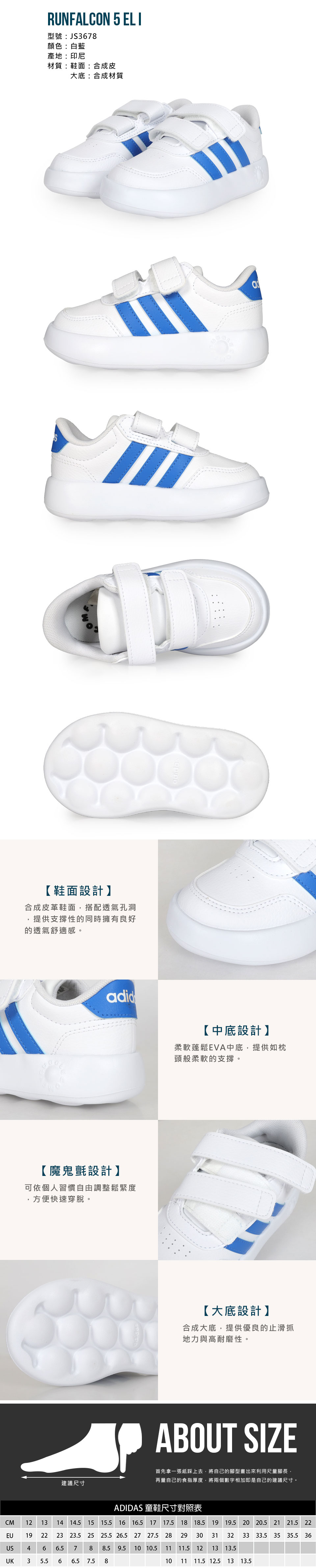 ADIDAS 小童運動休閒鞋  @BREAKNET 3.0 CF I@ JS3678 - 白藍