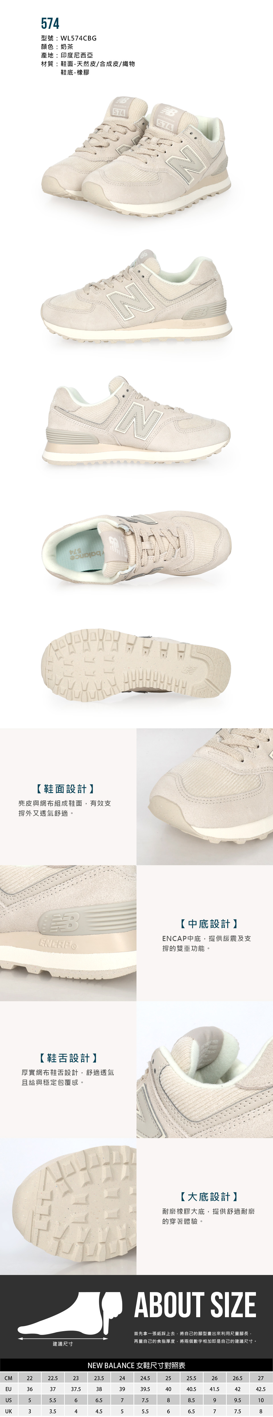 NEW BALANCE 女款復古慢跑鞋  WL574CBG - 奶茶