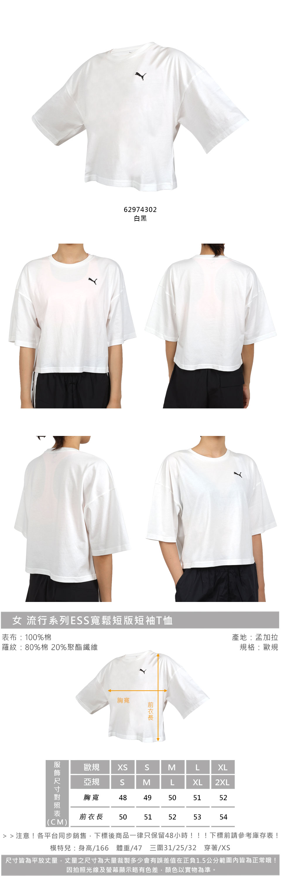 PUMA 女款流行系列ESS寬鬆短版短袖T恤  62974302 - 白黑