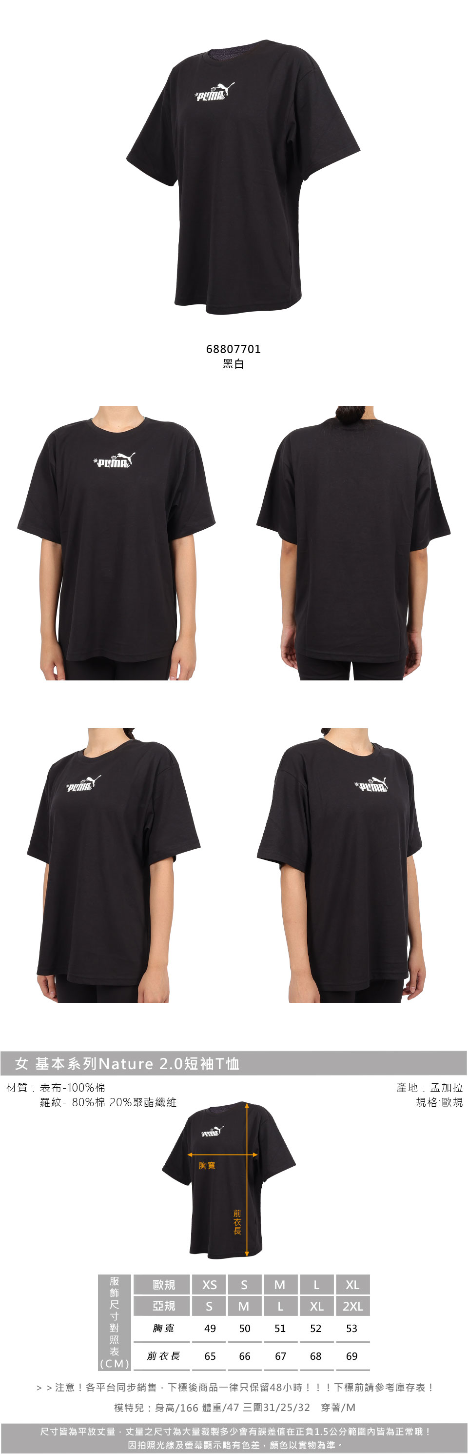 PUMA 女款基本系列Nature 2.0短袖T恤  68807701 - 黑白