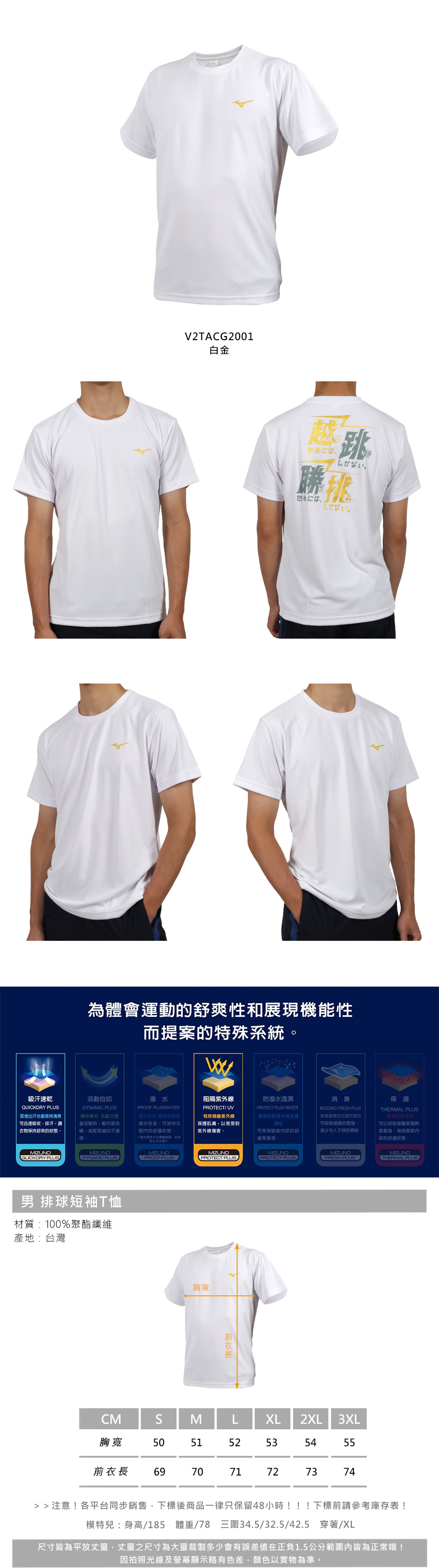 MIZUNO 男款排球短袖T恤  V2TACG2001 - 白金