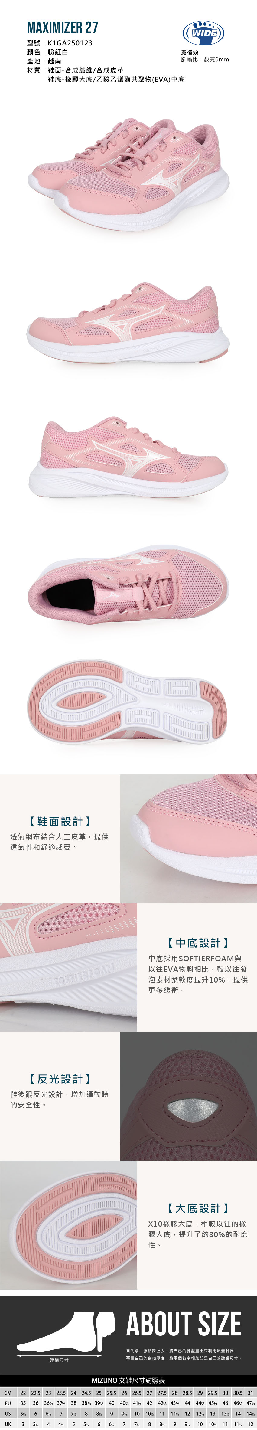 MIZUNO 女款慢跑鞋-3E   @MAXIMIZER 27@ K1GA250123 - 粉紅白