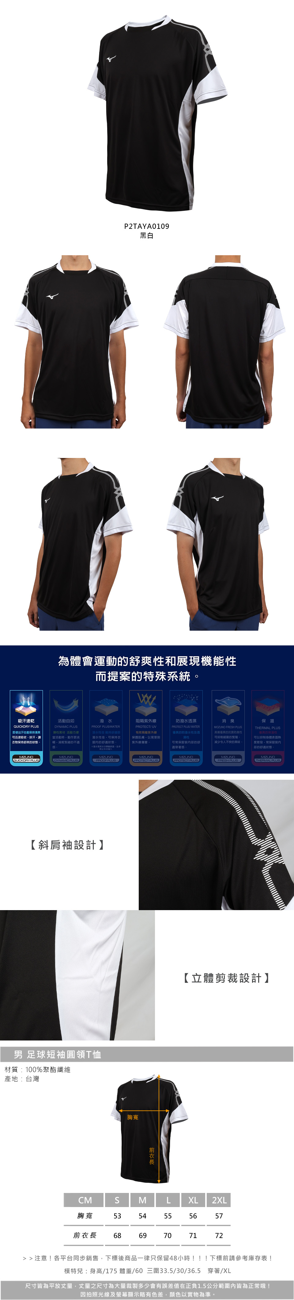 MIZUNO 男款足球短袖圓領T恤  P2TAYA0109 - 黑白