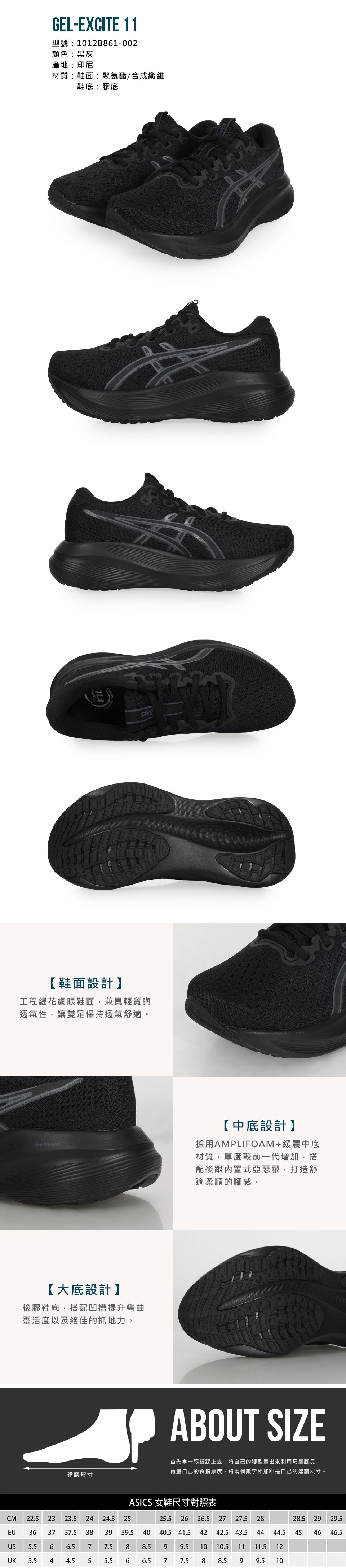 ASICS 女款慢跑鞋  @GEL-EXCITE 11@ 1012B861-002 - 黑灰