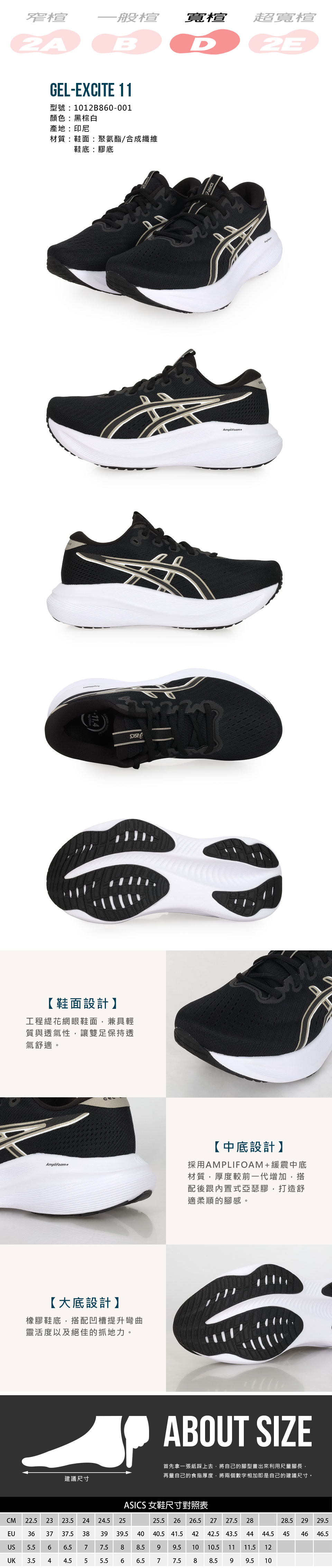ASICS 女款慢跑鞋-WIDE  @GEL-EXCITE 11@ 1012B860-001 - 黑棕白
