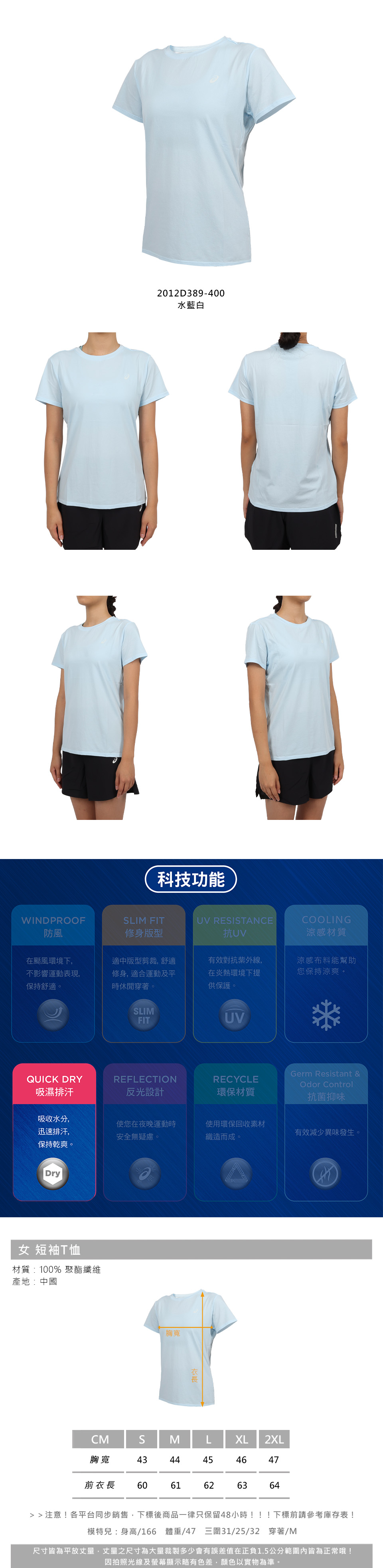 ASICS 女款短袖T恤  2012D389-400 - 水藍白