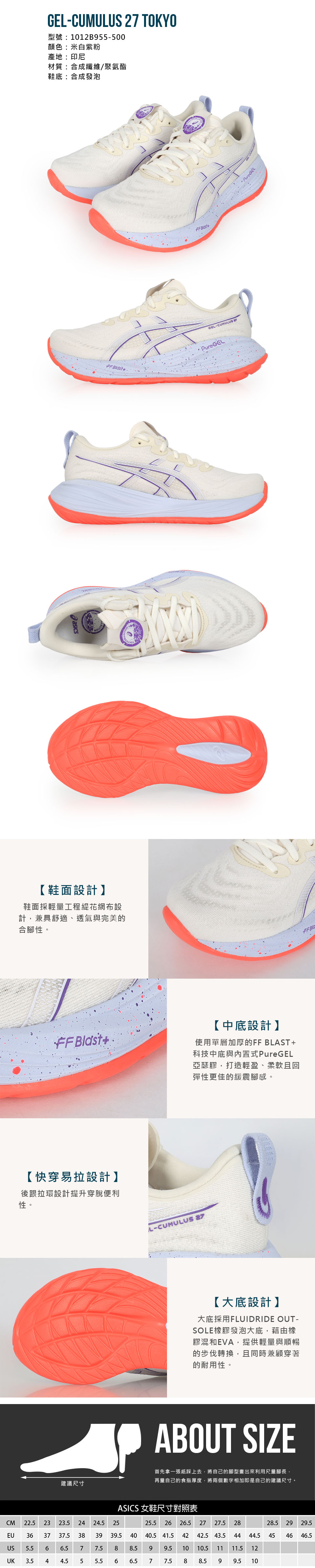 ASICS 特定-女款東京系列緩衝慢跑鞋  @GEL-CUMULUS 27 TOKYO@ 1012B955-500 - 米白紫粉