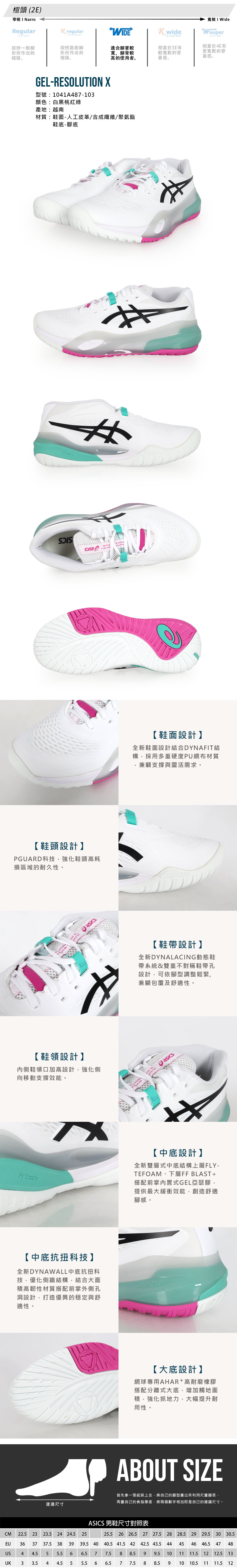 ASICS 特定-男款澳網網球鞋-2E  @GEL-RESOLUTION X@ 1041A487-103 - 白黑桃紅綠