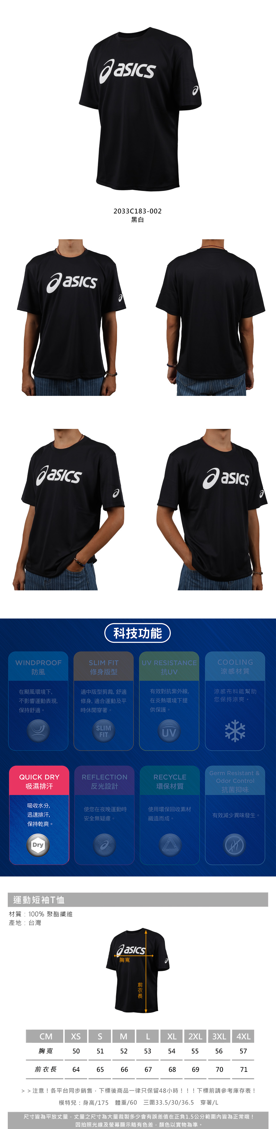 ASICS 運動短袖T恤  2033C183-002 - 黑白