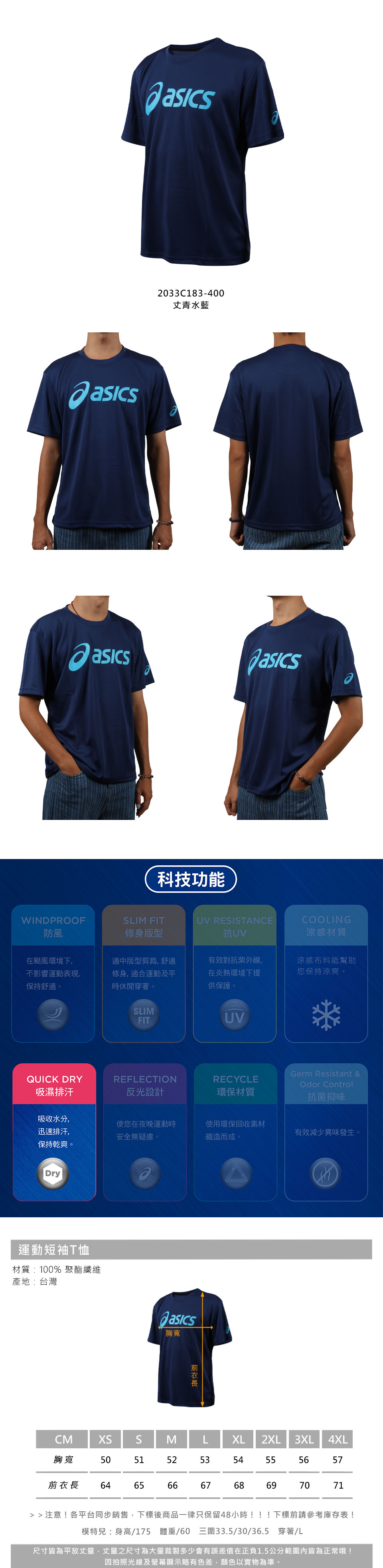 ASICS 運動短袖T恤  2033C183-400 - 丈青水藍