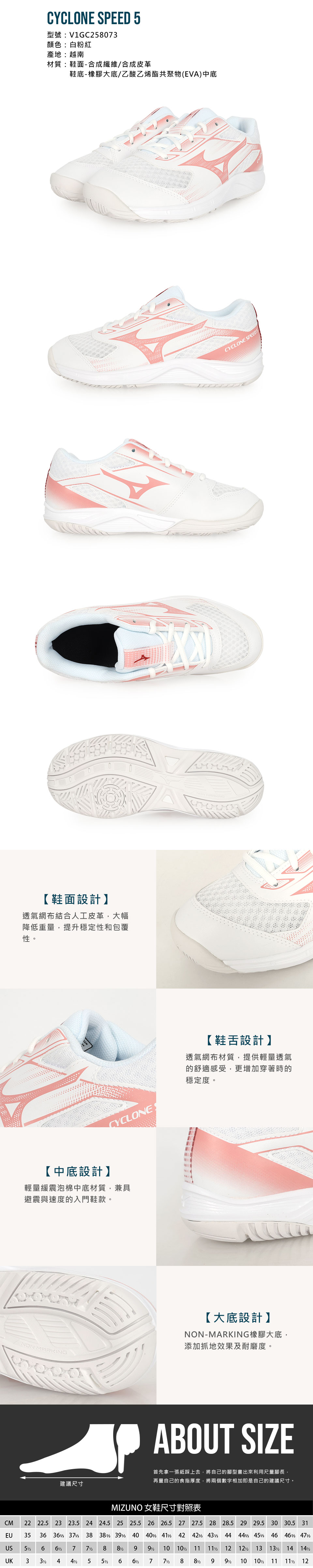 MIZUNO 女款排球鞋   @CYCLONE SPEED 5@ V1GC258073 - 白粉紅