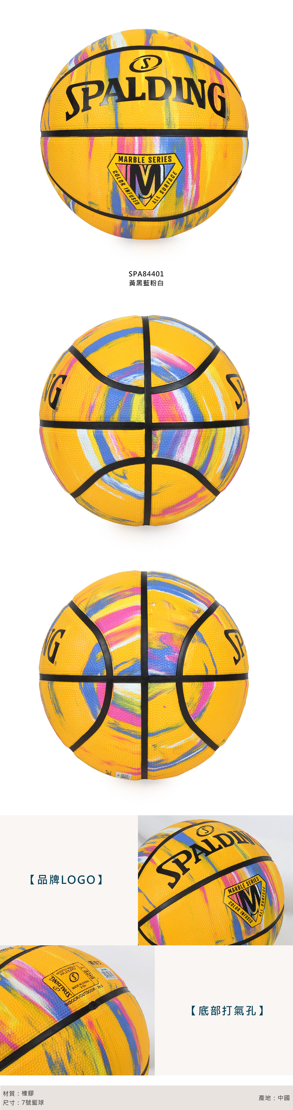 SPALDING 大理石系列-#7橡膠籃球#40650  SPA84401 - 黃黑藍粉白
