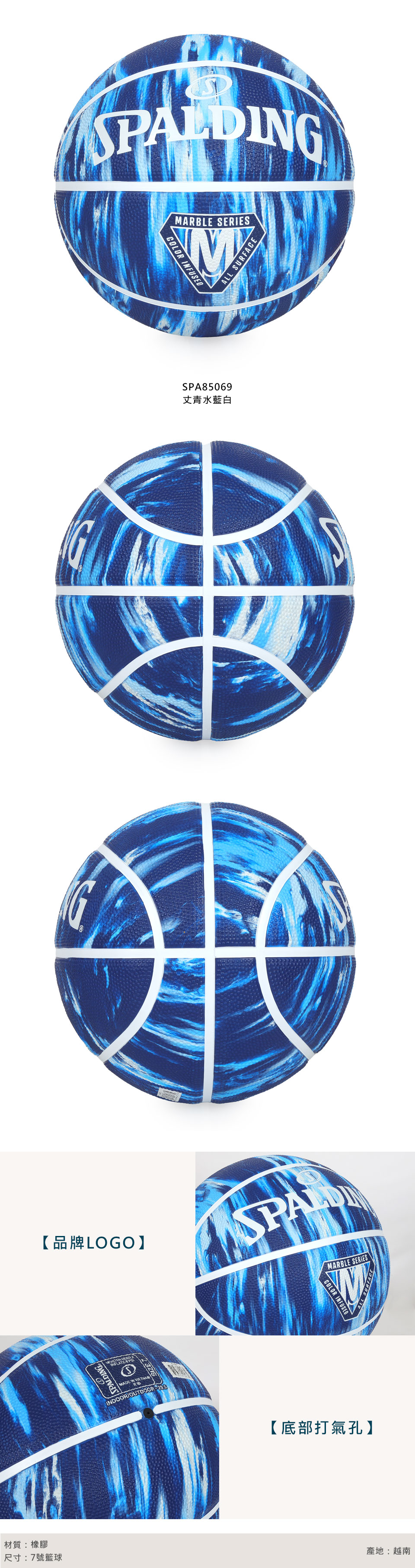 SPALDING 大理石系列-#7橡膠籃球#42435  SPA85069 - 丈青水藍白