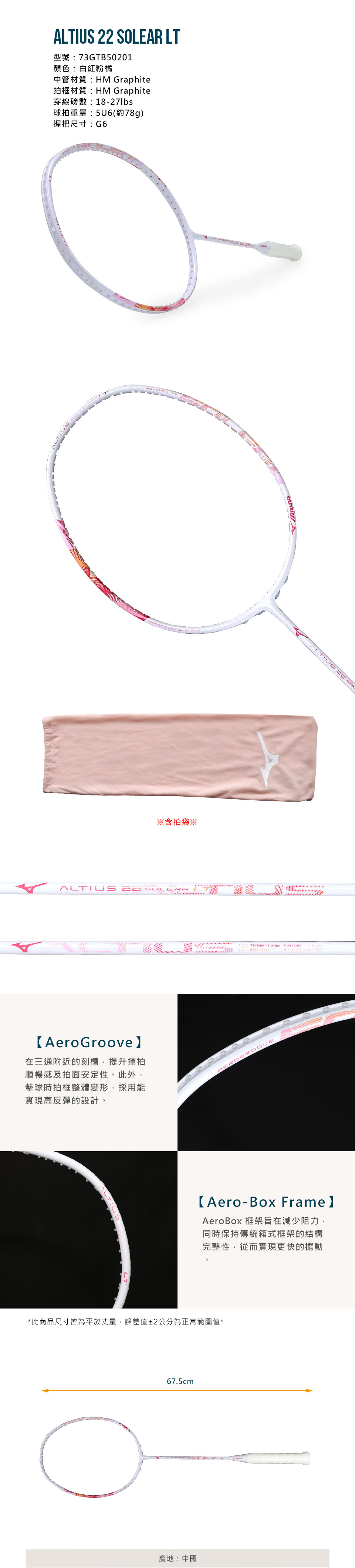 MIZUNO 羽球拍(附拍袋) 73GTB50201