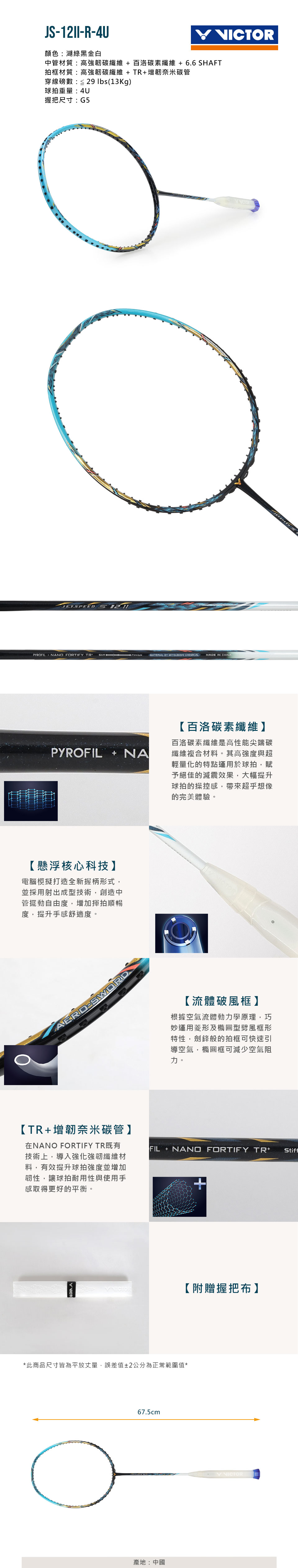 VICTOR 極速羽球拍  JS-12II-R-4U