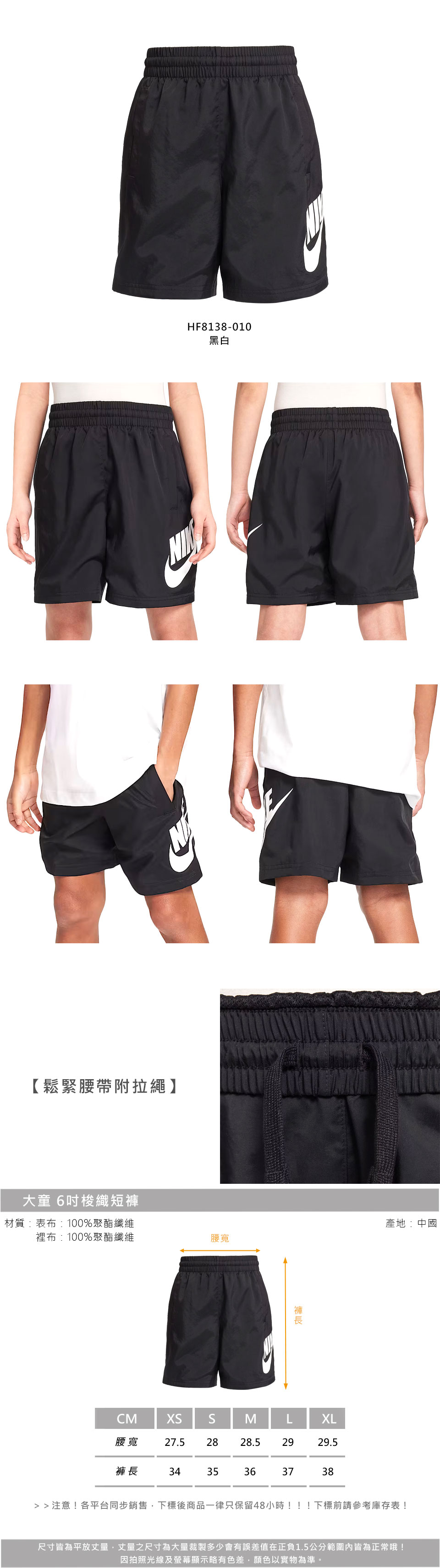 NIKE 大童6吋梭織短褲  HF8138-010 - 黑白