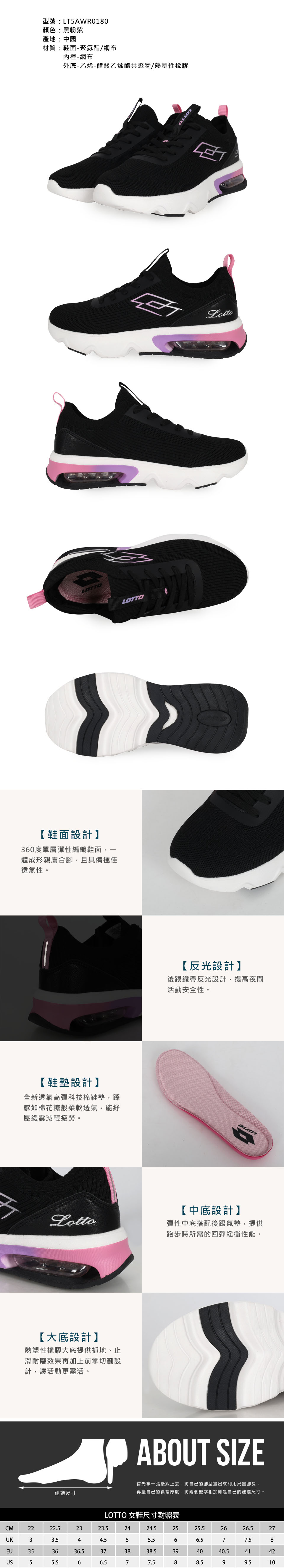 LOTTO 女款編織氣墊跑鞋  LT5AWR0180 - 黑粉紫