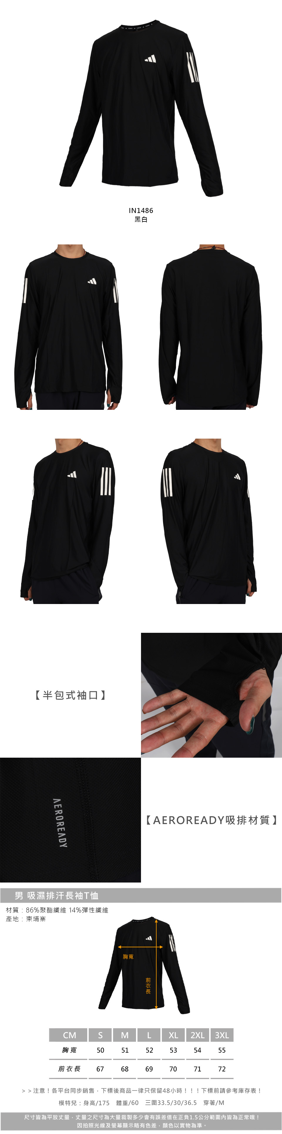 ADIDAS 男款吸濕排汗長袖T恤  IN1486 - 黑白