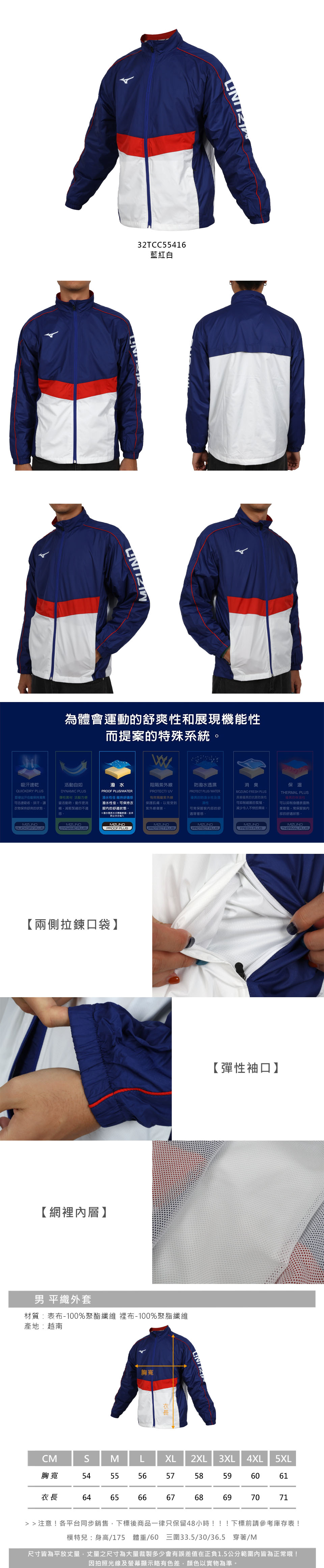 MIZUNO 男款平織外套  32TCC55416 - 藍紅白